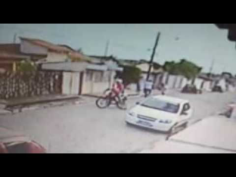 Dois homens em uma moto assaltaram três pessoas numa rua do bairro. A ação foi flagrada por câmeras de segurança